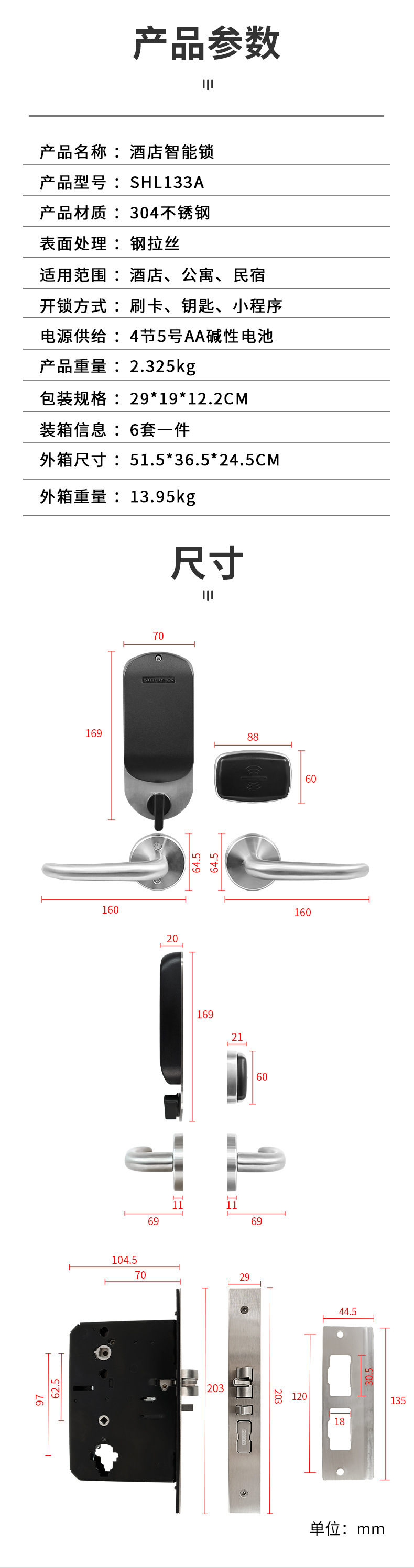 SHL-133A 不锈钢304酒店分体式刷卡智能感应锁