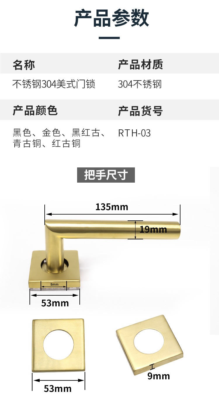 RTH-03 不锈钢美式方盖无钥匙通道房门锁