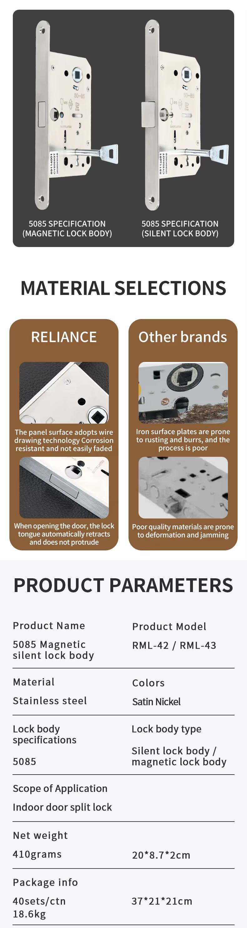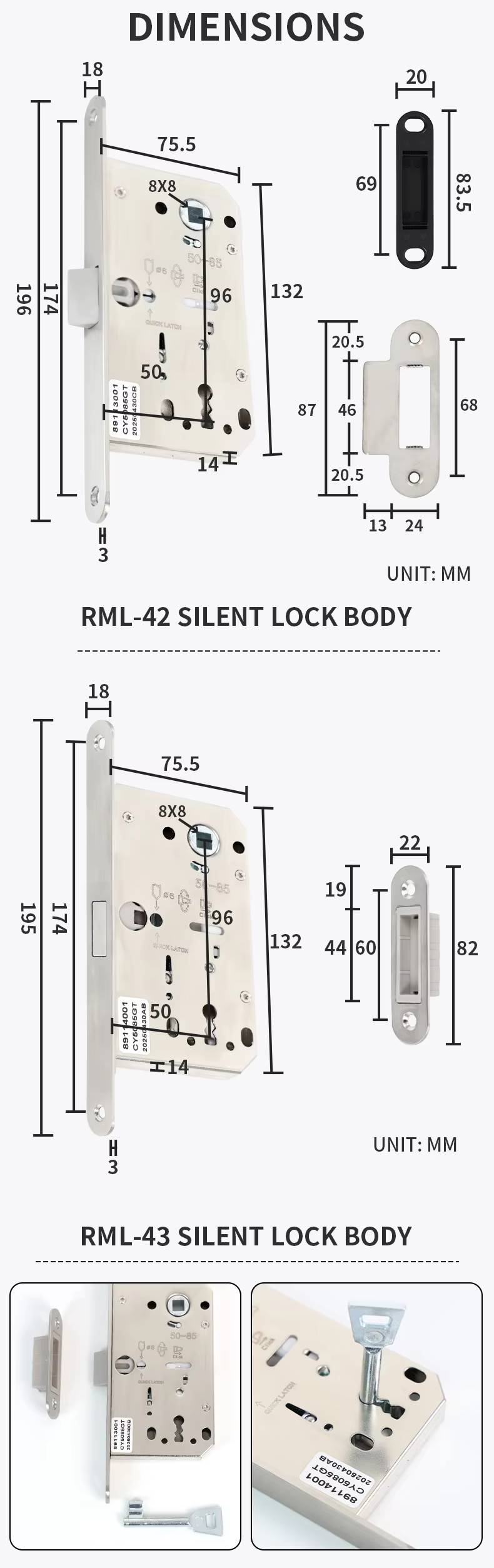 RML-42 RML-43 European Standard Size 8550 Security Latch Magnetic Silent Lock Body with Keys