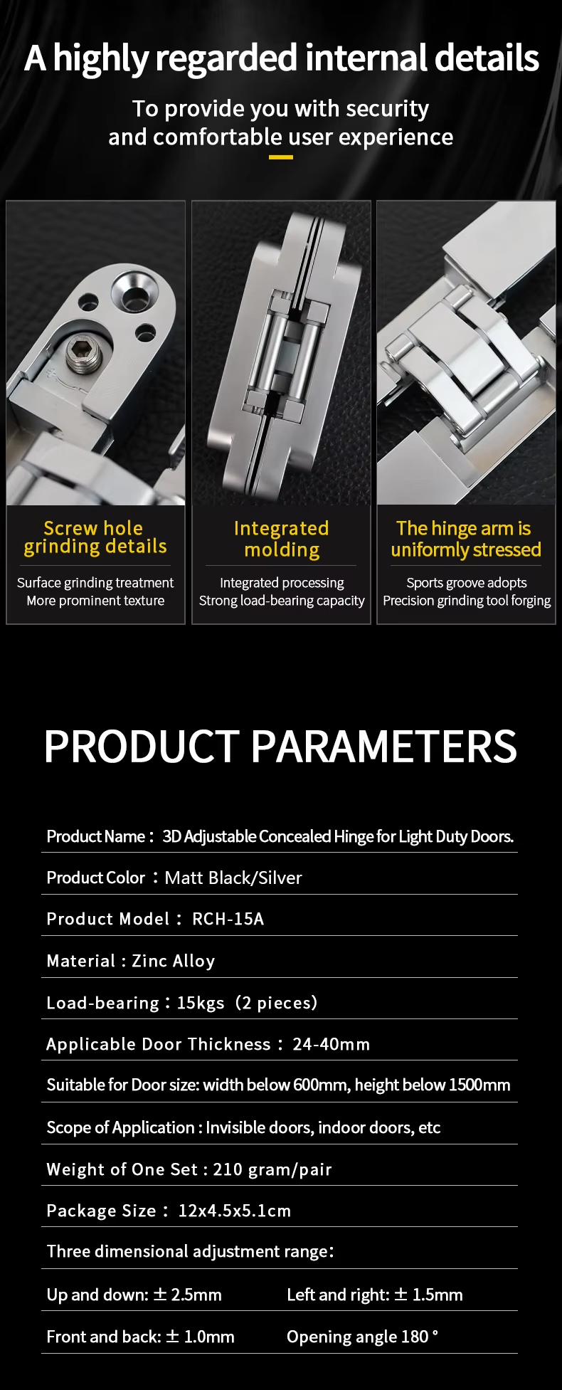 RCH-15A Light Duty Doors 3D Concealed Hinges